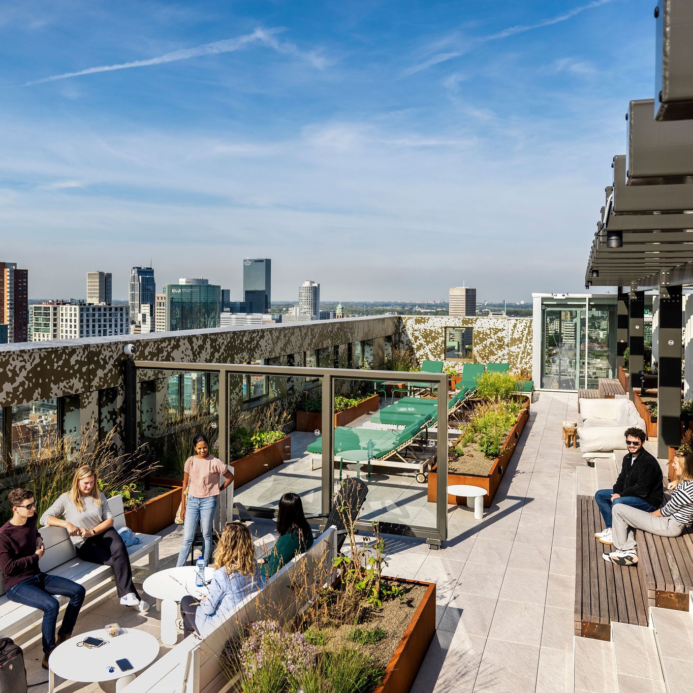 Admire the beautiful skyline of Rotterdam on the rooftop terrace, enjoy some time with friends and neighbours in the lounges, music and cinema rooms, get active in the rooftop gym, or just relax in your own apartment; if you are looking for an apartment or studio in Rotterdam OurDomain Rotterdam Blaak provides everything you need to feel at home.
